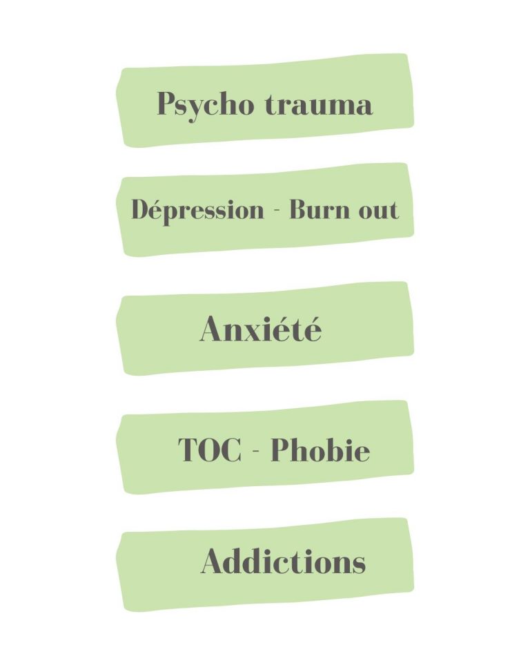Troubles du stress post-traumatique, TSPT complexes, troubles anxieux, addictions. Une méthode unique d’accompagnement individuel intégratif qui associe les bénéfices de diverses pratiques (EMDR, approche orientée solution, CNV, IFS, TCC, …). Elle permet le traitement des souffrances liées à tout évènement douloureux, stress post traumatiques…